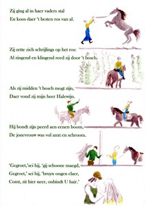 Halewijn is een van de oudste nederlandstalige gedichten, in de 19e eeuw her-taalt naar het idee dat men toen had van oud nederlands, voor mij is het een heldinnen epos en ik heb het met veel plezier geillusreerd